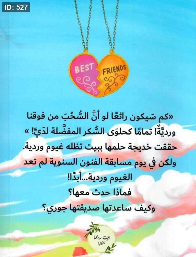 سَيكون رائعًا لو أنَّ السُّحُبَ من فوقنا ورديَّةٌ! تمامًا كحلوَى السُّكر المفضَّلة لدَيَّ! "حققت خديجة حلمها ببيت تظله غيوم وردية. ولكن في يوم مسابقة الفنون السنوية لم تعد الغيوم وردية...أبداً!