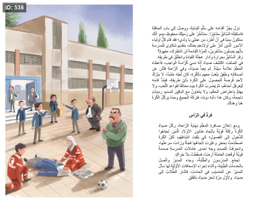 في يَومٍ ما، رَكَل ضِياء الكُرةَ رَكْلةً قويَّةً، فاصْطَدمَتْ في حَجَرٍ وغيَّرتْ مَسارَها… ومنذُ ذلكَ اليومِ، تَبدَّلَتْ حياةُ ضياءَ .. ولكِنْ كيفَ؟