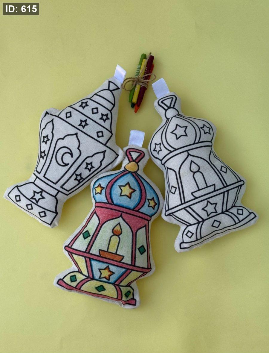 عبارة عن فانوس من القماش محشو فايبر يمكن تلوينه وغسله في الغسالة واعادة تلوينه عدد لانهائي من المرات مقاس الفانوس ٢٥ في ٢٠ سم تقريبا
