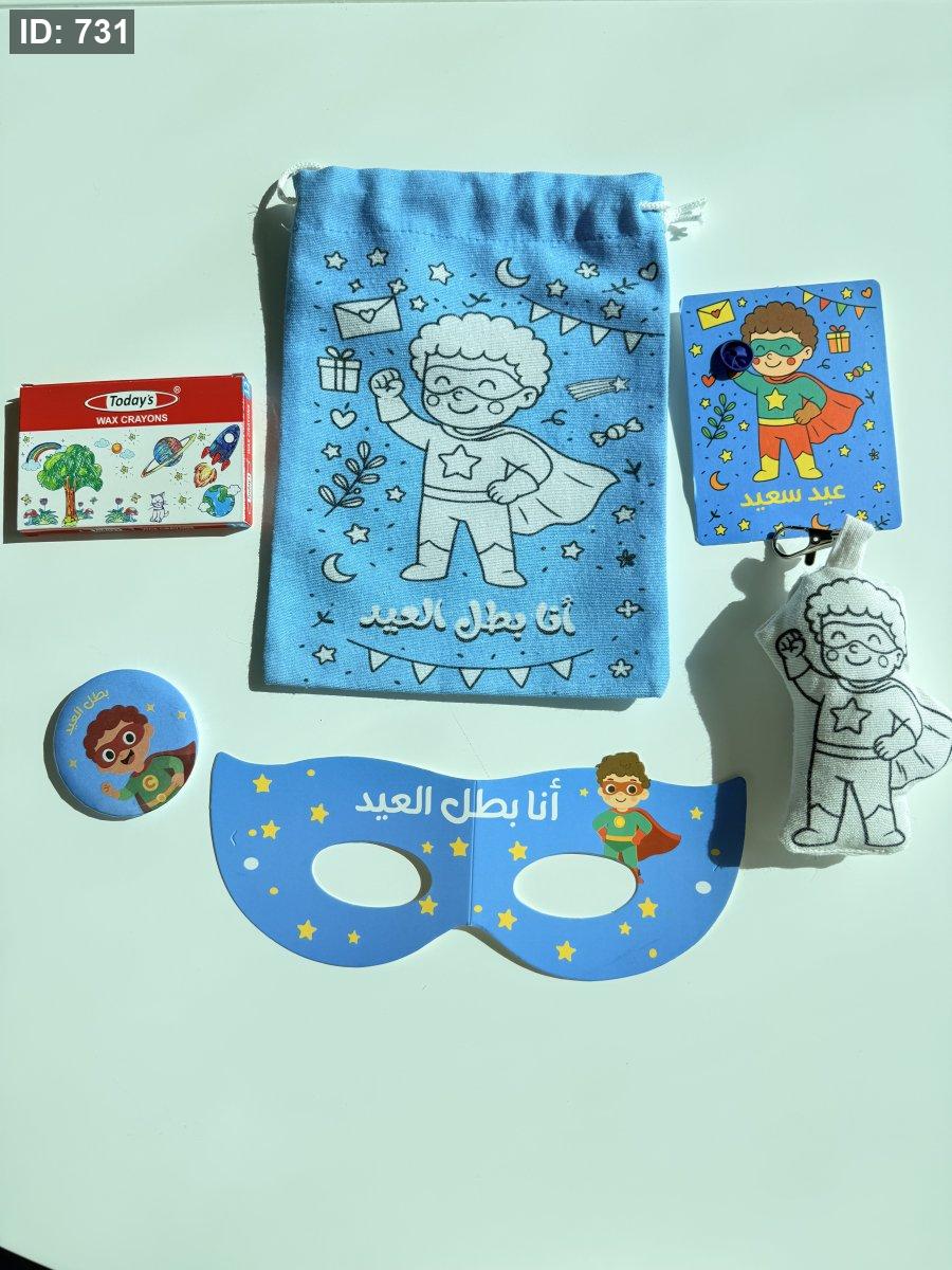 كيس قابل للتوين -ميدالية قابلة للتلوين - دبوس بطل العيد للحقائب والملابس- قناع -الوان - بطاقة بالون (بدون بالون )