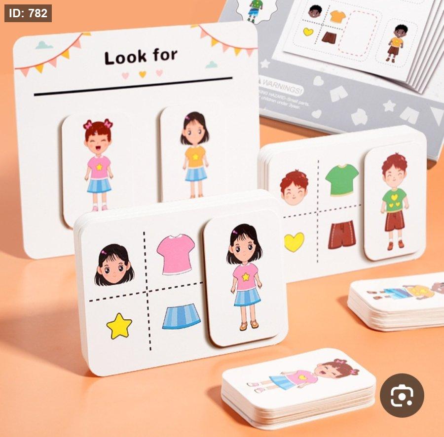 هذه اللعبة هي أحجية تعليمية للأطفال من نوع "بحث ومطابقة" .. تساعد في تطوير المهارات الإدراكية والتعليمية من خلال مطابقة الأشكال والملابس مع الشخصيات.