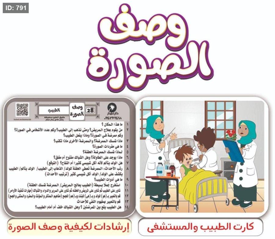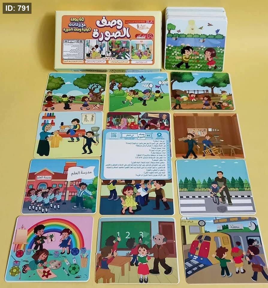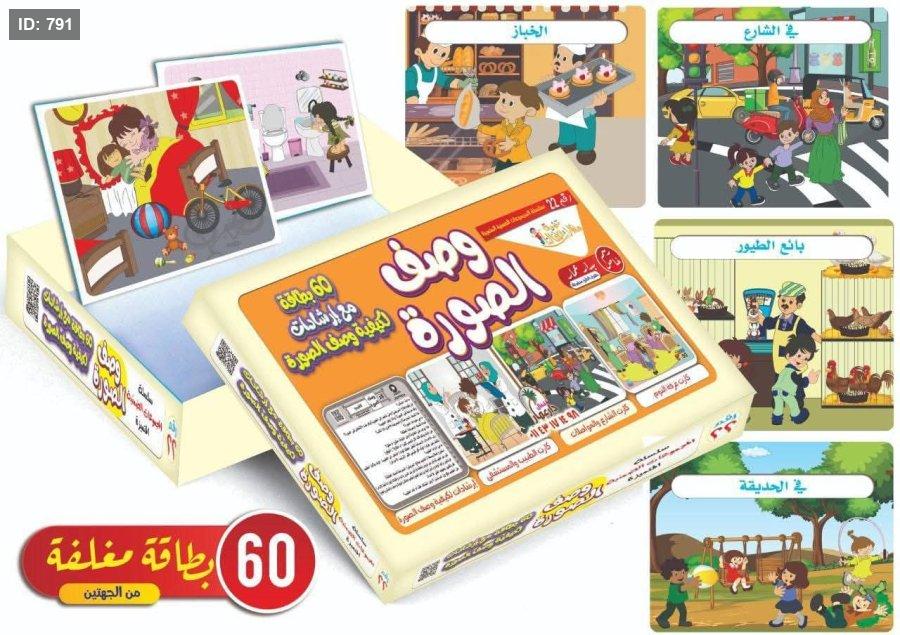 خلف كل كرت في وصف دقيق للصورة بيراجع وينشّط مهارات الطفل اللي اتعلمها في المجموعات السابقة، وبيخلّيه يفكّر ويتكلم ويكوّن جُمل بنفسه